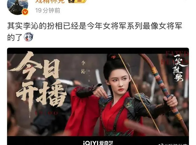 更贫窭的是,李沁还切身下场互动,发微博说“看了 挺帅”,配图仍是剧照。这种接地气的操作,俄顷拉近了和不雅众的距离。不像某些明星,剧播了跟我方不要紧似的。