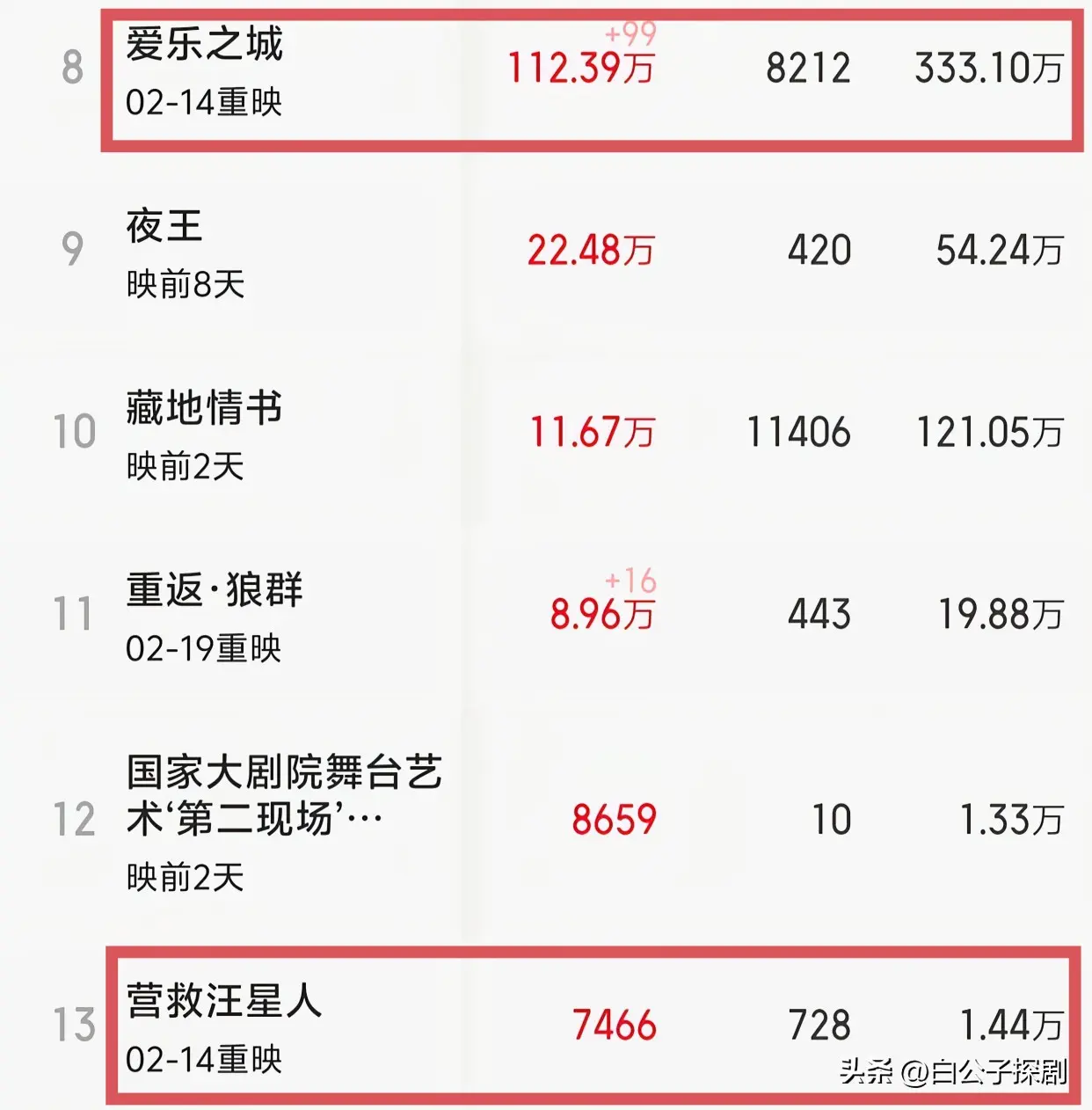 情东谈主节爆冷,重映电影南北极分化严重,王影璐成最大赢家。