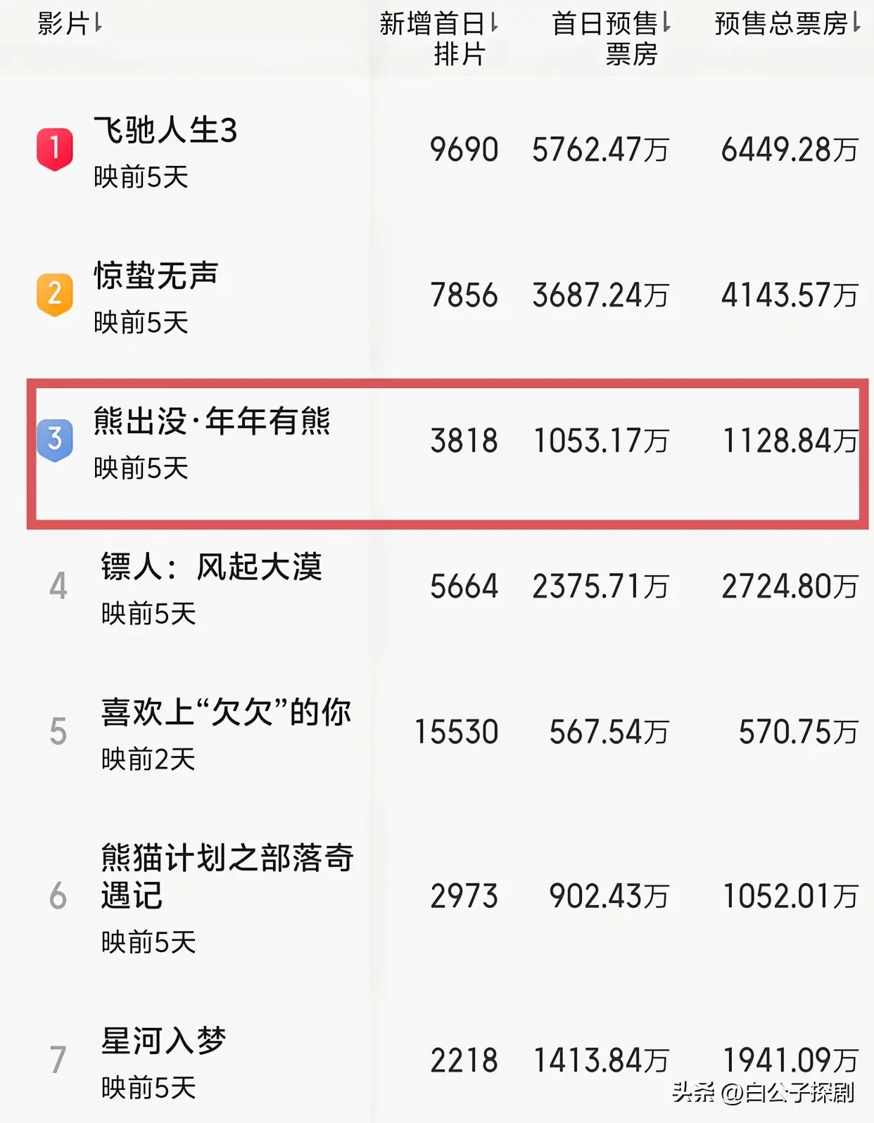 当今,《疾驰东谈主生3》在各方面的发扬齐相配亮眼。举例,排片、总预售、首批预售、场次、不雅影东谈主数,弥漫排在了榜一。